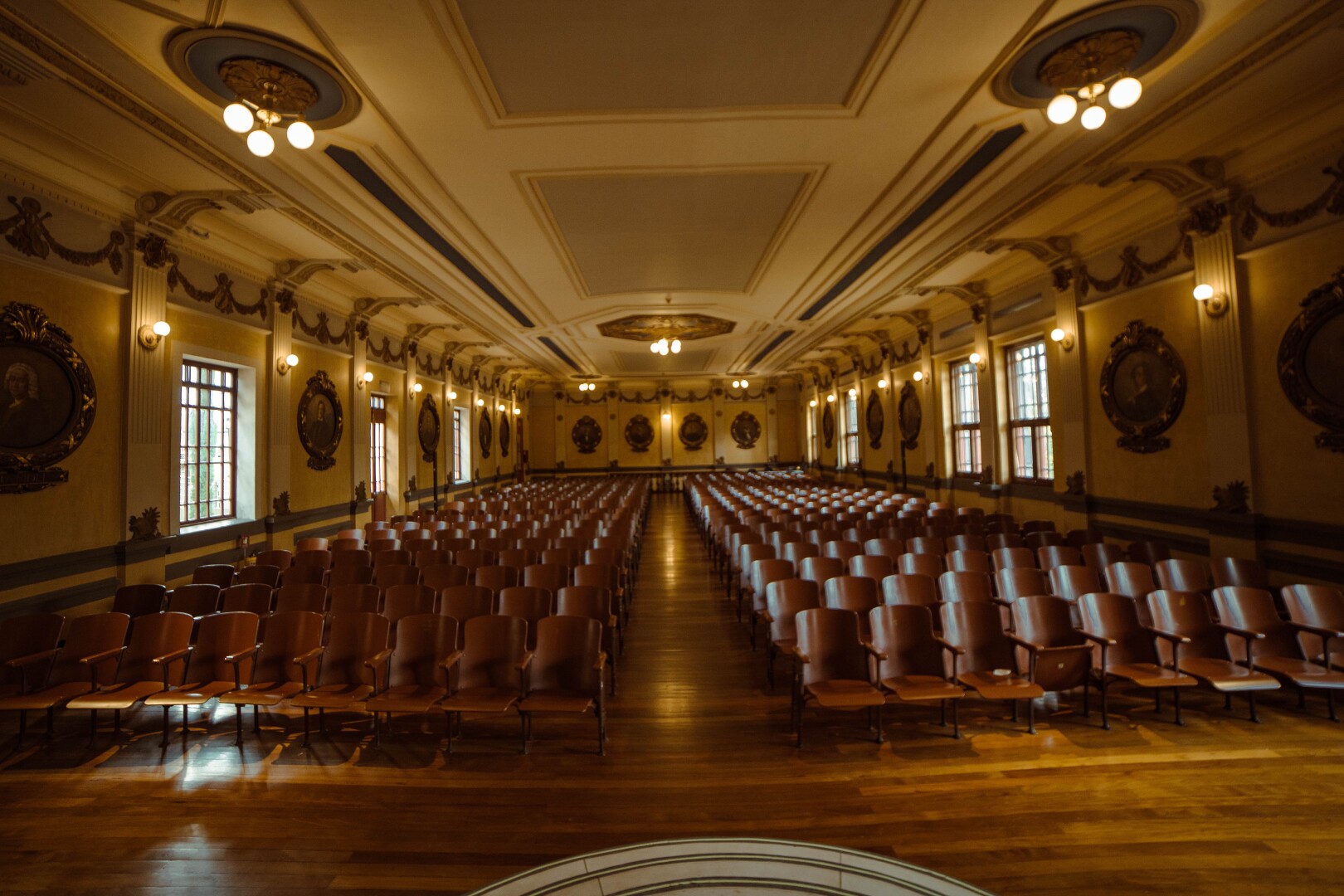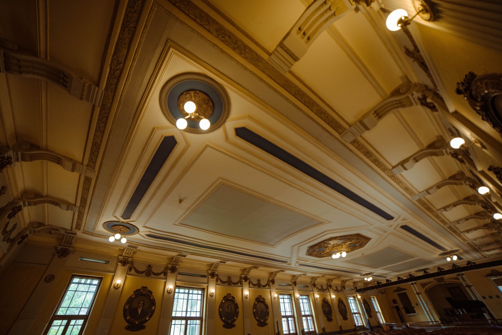 En 1928, a la institución, le es asignada la edificación actual y se hacen las primeras intervenciones para adecuaciones formales, momento que es definitivo para la vida del futuro Bien de Interés Cultural Nacional. En 1932 se construye la Sala de conciertos Beethoven obra del ingeniero Helí Moreno, por tal motivo un busto en bronce de Ludwig Van Beethoven preside el escenario, en 1933 el maestro en pintura Domingo Moreno Otero elabora 16 medallones en óleo sobre lienzo con marcos en yeso, dorado y policromado, representando retratos de grandes maestros de la música clásica y barroca.