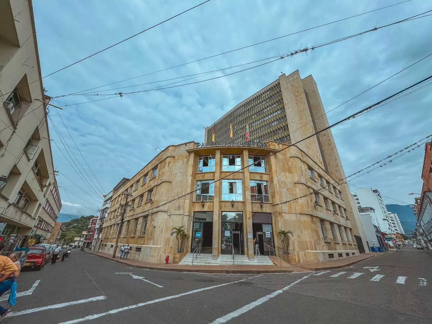 Su tipología arquitectónica combina elementos modernos con detalles ornamentales del estilo Art Decó, lo que le confiere una estética sobria y elegante. Destaca su fachada en piedra muñeca o bogotana, que le da un carácter distintivo. La entrada principal está marcada por un gran frontón que conduce a un hall de grandes proporciones, donde se puede apreciar una impresionante escalera en forma de "Y" que conecta con el segundo nivel y las oficinas del primer piso. Su principal característica estética es su sencillez y austeridad, sin adornos excesivos, lo que resalta su elegancia. El patio central, por su parte, contribuye a la iluminación y ventilación de la edificación, creando un ambiente interior armonioso. En 1980, se le añadió una torre de 11 pisos, que alberga los despachos judiciales y el Tribunal del Tolima, complementando la estructura original sin alterar su esencia histórica.