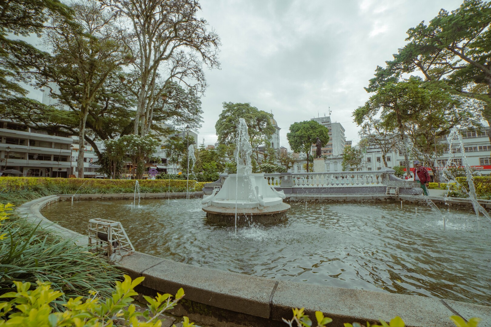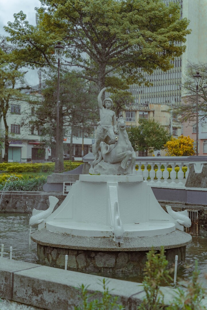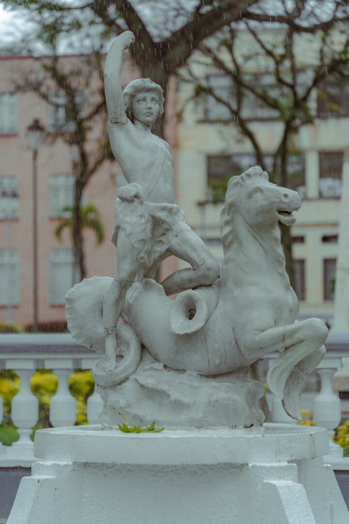 Posterior a 1910 fueron instaladas tres esculturas, la estatua de Simón Bolívar en el centro de la plaza, obra del escultor italiano Tanerani y dos querubines, uno montado sobre un caballo marino y otro luchando con el pez de las profundidades “Los hijos de Neptuno” del escultor italiano Guioseppe Pertiti estos se pueden apreciar inmersos en las piletas que adornan el transitar del espacio público.